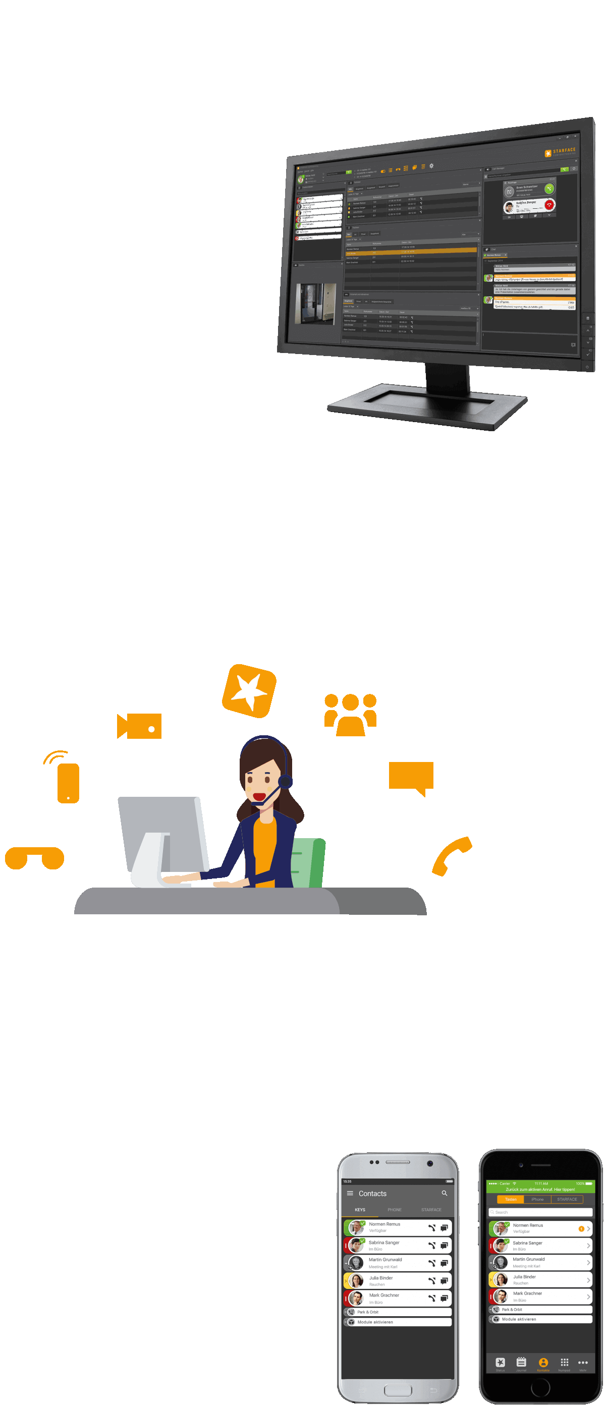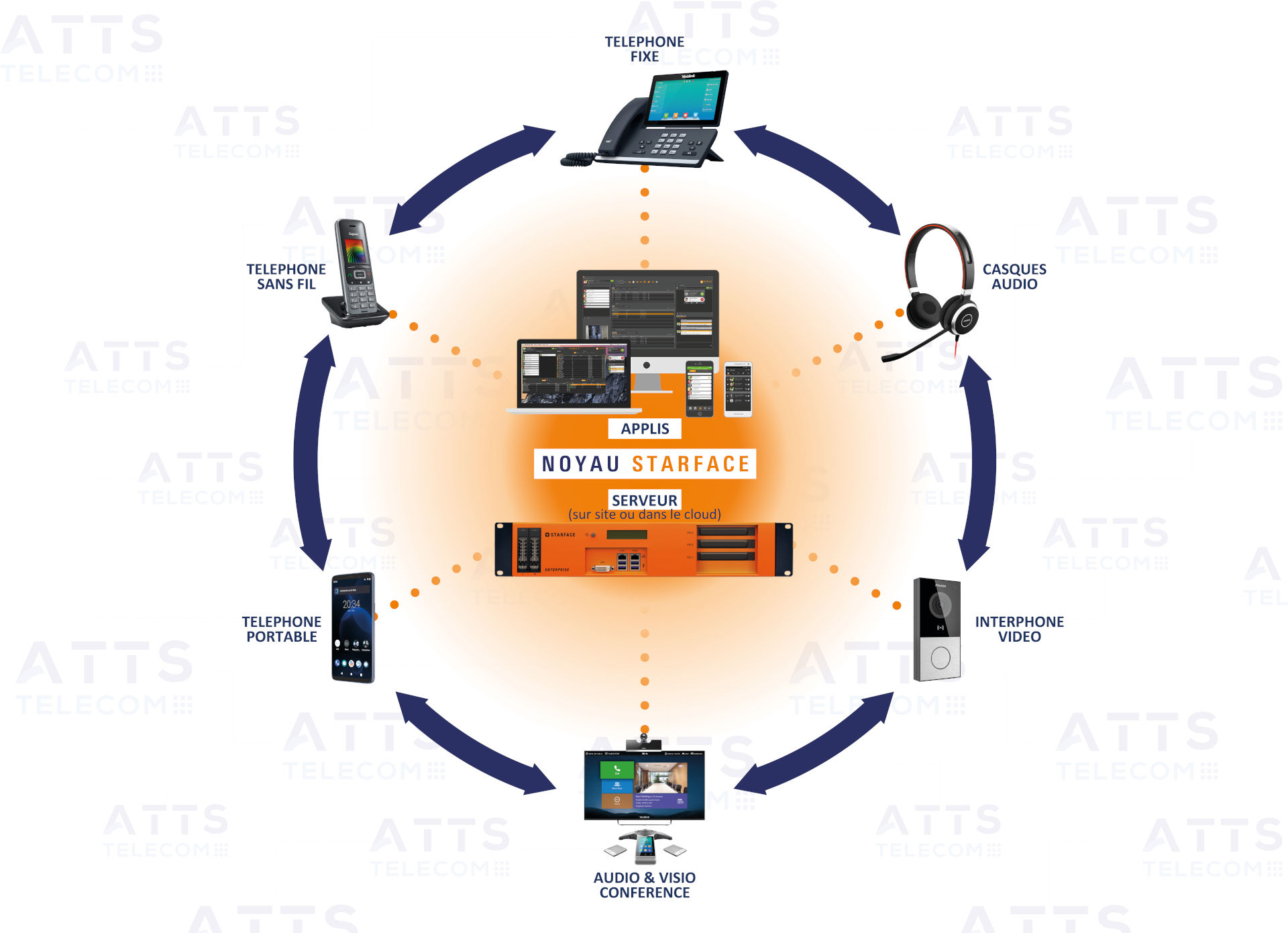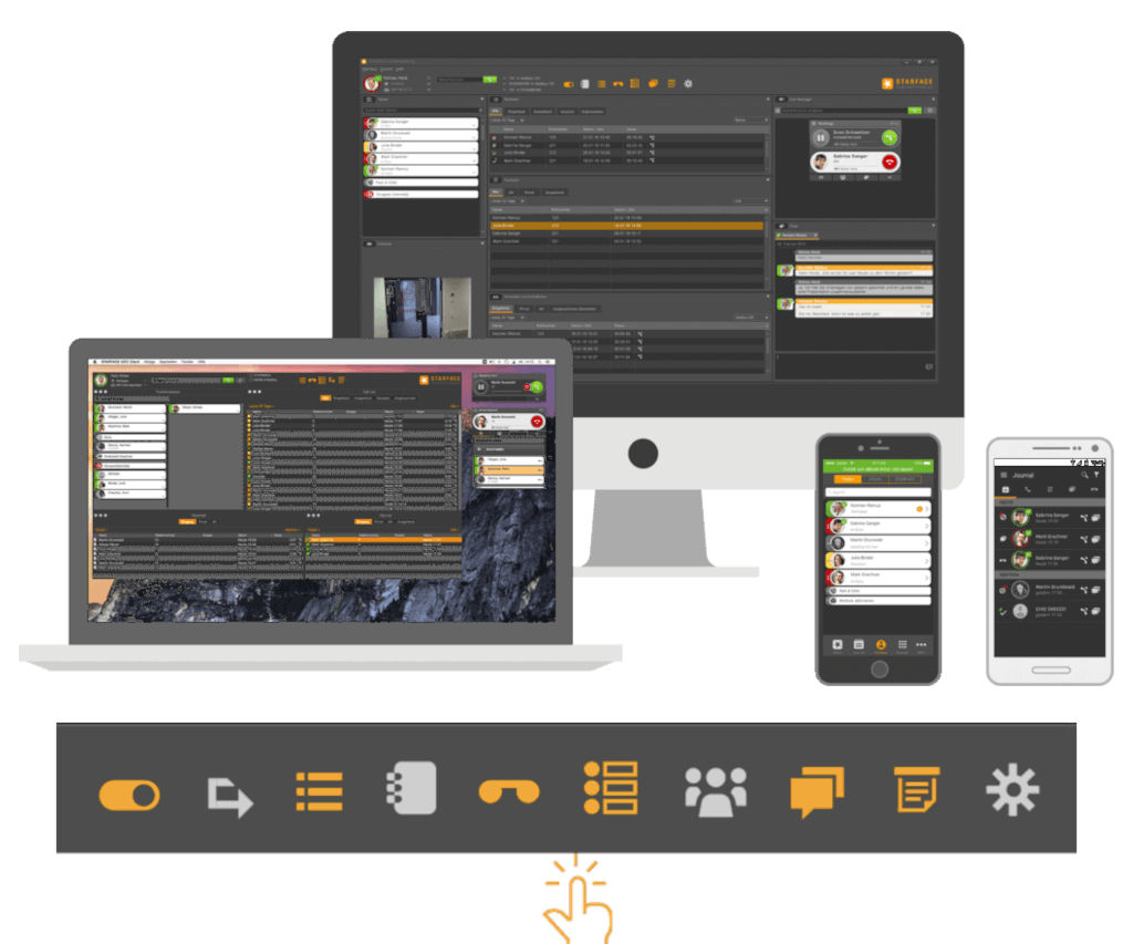 L'interface applicative Starface, disponible via un poste de travail, un mobile ou bien encore depuis le web, regroupe tous les canaux de communication sur votre appareil préféré et transforme ce dernier en centrale innovante de communication.